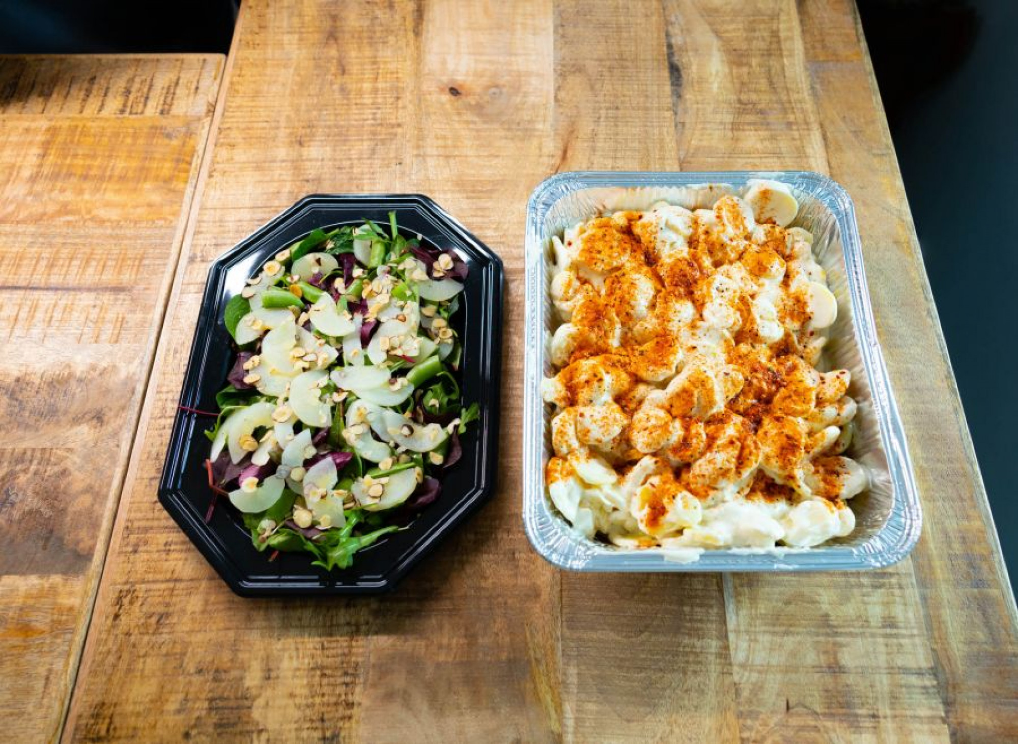 - 3 valgfrie salater eller salatbar (se liste med muligheder nedenfor)